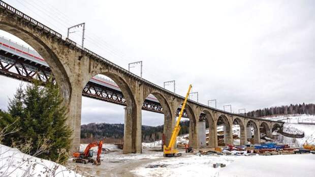 В Красноуфимском районе Свердловской области открылось движение по новому железнодорожному виадуку, который существенно увеличит скорость и безопасность движения грузовых и пассажирских составов по участку Транссиба. Как сообщили в ДИПе, новый виадук расположен параллельно старинному железнодорожному мосту 1918 года постройки на перегоне Пудлинговый – Чёрная Речка. Сегодня движение поездов переключили со старого виадука на новый. «Крупные капиталоемкие инфраструктурные проекты вносят существенный вклад в социально-экономическое развитие региона, создают новые рабочие места и увеличивают налогооблагаемую базу. Только за 2021 год инвестиционные вложения компании ОАО «РЖД» на территории Свердловской области составили около 18 миллиардов рублей», – сказал первый заместитель губернатора Свердловской области Алексей Шмыков, выступая на открытии виадука. Введение виадука в эксплуатацию повысит пропускную способность железнодорожной инфраструктуры, увеличит скорость движения поездов до 90 километров в час и вес грузовых составов на направлении между центральными районами России, Сибирью и Дальним Востоком. «Одним из ключевых факторов производственной эффективности станет максимальная загрузка мощностей новых локомотивов «Ермак» при организации тяжеловесного движения с использованием инновационных вагонов с повышенной грузоподъёмностью», – отметил начальник Горьковской железной дороги Сергей Дорофеевский.